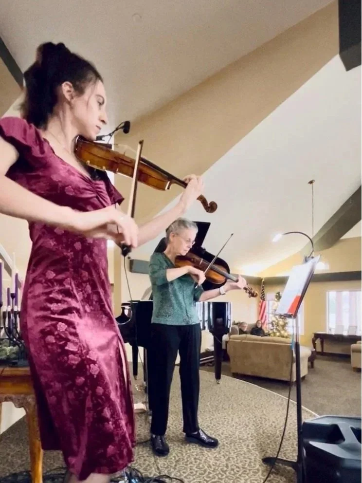 Annie Gregurich met Judith Mancinelli, retired professor of piano at Millikin University and former violinist with the Millikin-Decatur Symphony Orchestra, when she began studying piano with her at age 11. The two quickly bonded over music and began performing in classical piano concerts together where they enjoyed playing music for four-hand piano. Annie was eventually inspired by Judith to also pick up the violin as a secondary instrument. In 2024, they began to incorporate fiddle music into their classical piano performances, often at the end of a program, which evolved into their creation of a duo focused on unique arrangements inspired by folk music. They are often joined by violinist Kamen Petkov, Springfield, IL - based performer, chamber musician, and violin instructor.